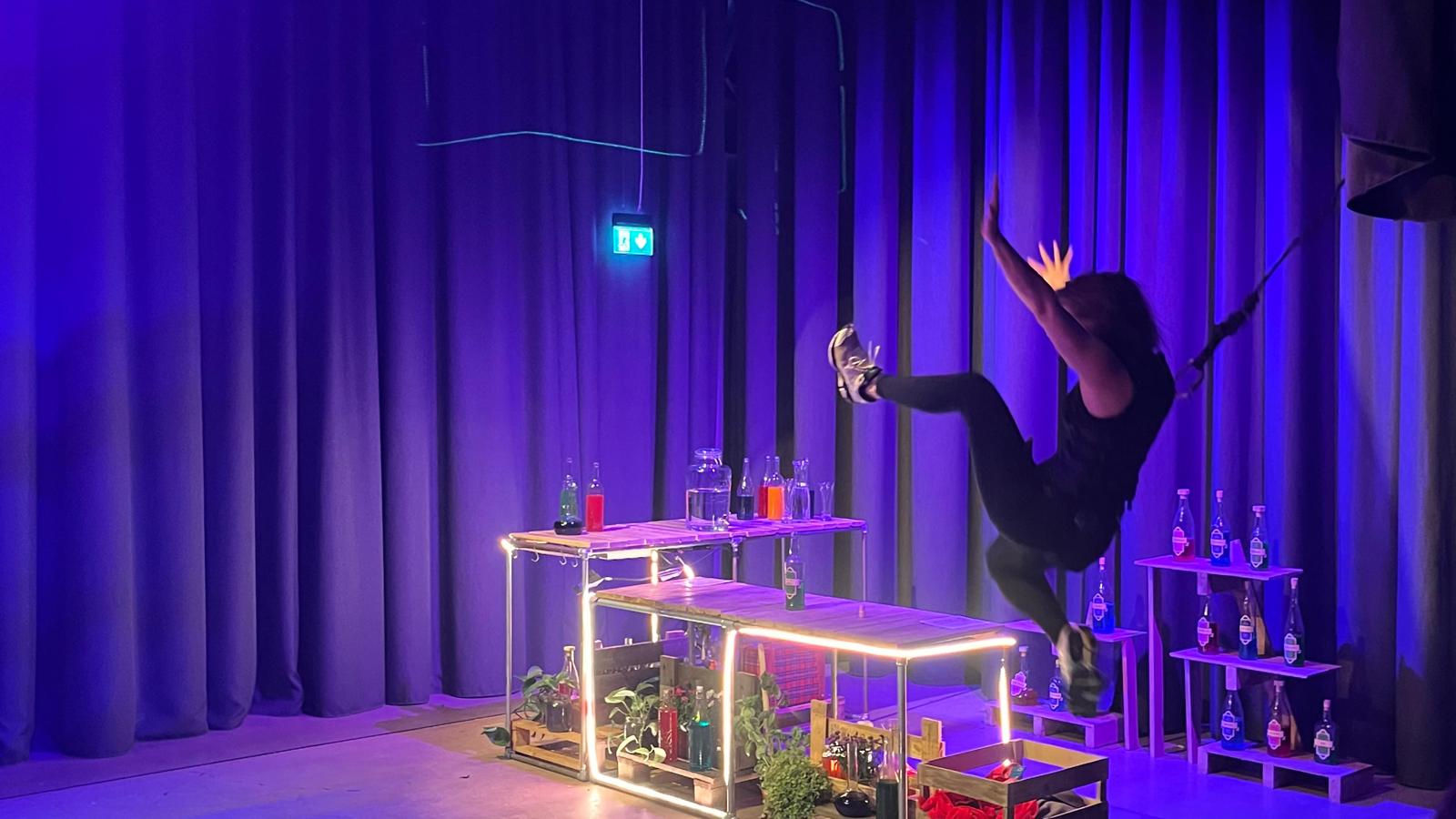A devised, interactive performance dealing with young people and mental health. The audience is asked to vote for which scenes they wish to add to the mental health cocktail of the day. Includes stunt performance, rap, dj and storytelling. Performed indoors and outdoors at the Aveny-t theatre. Produced by TeaterKUNST.